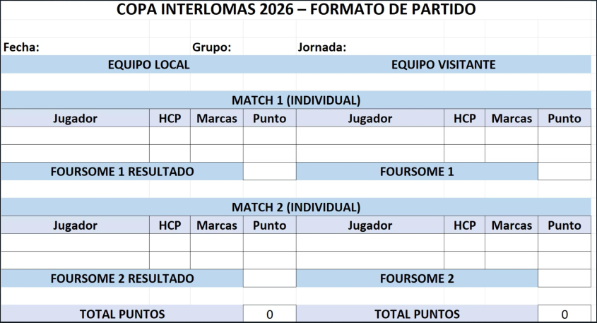 En caso de diferencia considerable de hándicaps, se jugará a 3 hoyos, con máximo de 1 ventaja en el Match individual y de 2 para el Foursome.